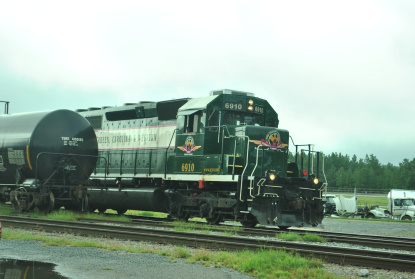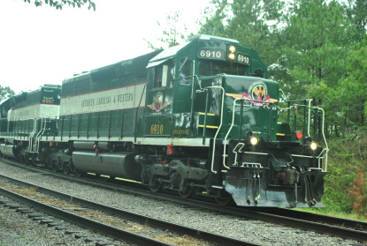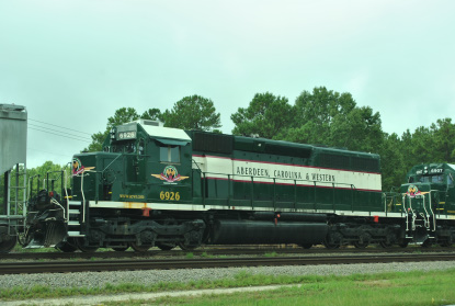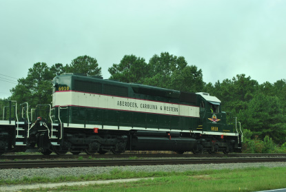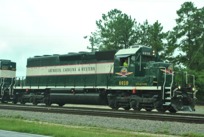 Aberdeen, Carolina & Western Railroad 6910 is pulling his cars out of the siding.