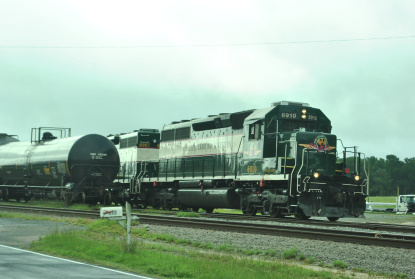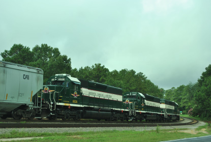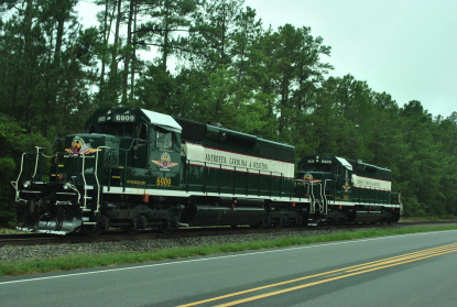 The other two Aberdeen, Carolina & Western Railroad engines along the highway with ACWR SD40-3 6909 built in 1970 in the lead.