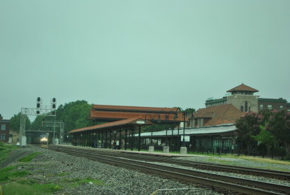 The Wilson Atlantic Coast Line station built in 1924. I saw a headlight down the tracks coming our way from the south.