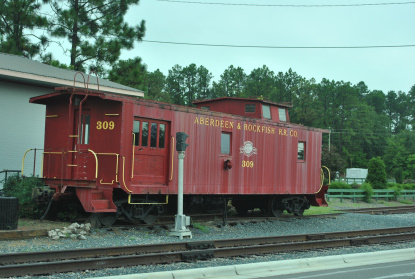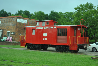 Aberdeen & Rockfish Railroad caboose 303. From we drove over the Aberdeen & Rockfish Railroad shops.