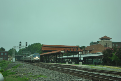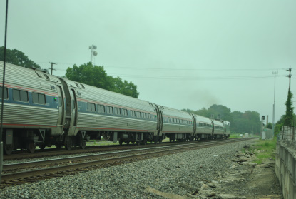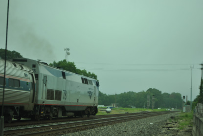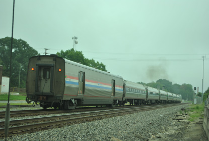 We left the Super 8 in Salisbury and headed to the grade crossing just north of the Salisbury station. Here we waited for the Carolinian to arrive and I called Julie, Amtrak's automated agent to learned it departed 25 minutes late this morning.