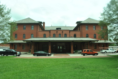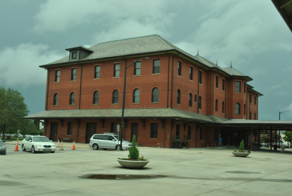 The Aberdeen & Rockfish/Laurinburg & Southern Railroad station built in 1910. Later east down the highway we gassed up the rental car then drove through some heavy one lane traffic at the golf course used by the Masters Tournament. From there, we drove into Fayetteville to our next stop.