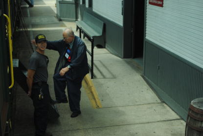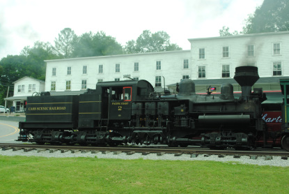 This morning, Elizabeth and I were bus hosts for the trip down to Cass and then from Elkins later on in the day. We both got up at 5:30 AM and met John Goodman in Harrigan's Restaurant. After John gave us our vests, we walked over to McDonald's where I had hot cakes and sausage. We then waited in front of the hotel with our clipboards of passenger rosters and waited for the buses to arrive. They arrived late and once we put the bottled water on the buses, the passengers could choose one of three buses for their ride to Cass. I had thirty-five of my usual riders on my bus and upon departing Cumberland, I gave a running commentary of things to see, such as Seneca Rocks and explained Mountain Rail to everybody, told them that we were not going to ride the Durbin Rocket today and pointed out the Greenbank observatory dishes.