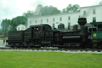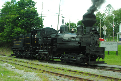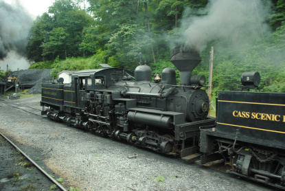 Cass Shay 11 which once worked for the Feather River Lumber Company and then went to the Pacific Southwest Railroad in Campo, California where it pulled the Great Freight, which moved most of their equipment to that site before, in 1998, it headed east to Cass.