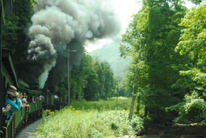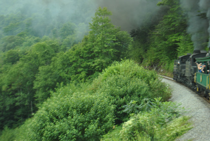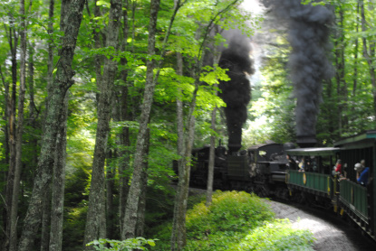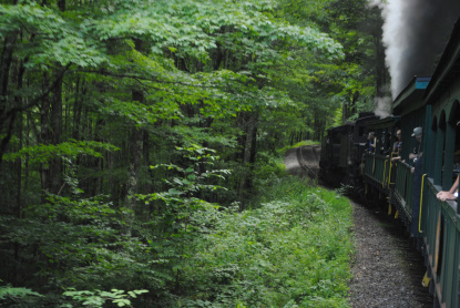 Cheat Mountain Salamander and the Durbin and Greenbrier Valley Railroad HistoryNamed in honor of the little endangered creature whose sole habitat is the river of the same name, the Cheat Mountain Salamander takes you through some of the wildest mountain wilderness you will ever experience! Travel into the high country forests of legendary Cheat Mountain on this most distinctive rail excursion, featuring great mountain vistas. Choose between Elkins Depot and Cheat Bridge departures. This trip includes a cold sandwich buffet served en route.