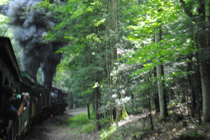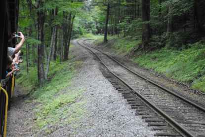 This trip also includes many interesting features such as a long tunnel built with an "S" curve far underneath Cheat Mountain, numerous long mountain vistas, and many opportunities to view exotic wildlife including bald eagle and black bear sightings. Stopovers include the inspirational "High Falls of the Cheat" and the former sight of the notorious town of Spruce, WV, once the highest and coldest incorporated town east of the Mississippi, accessible only by rail.