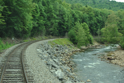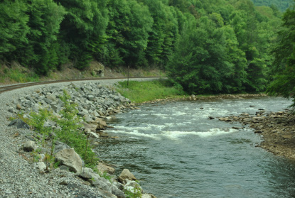 Running along the Shavers Fork of the Cheat River.