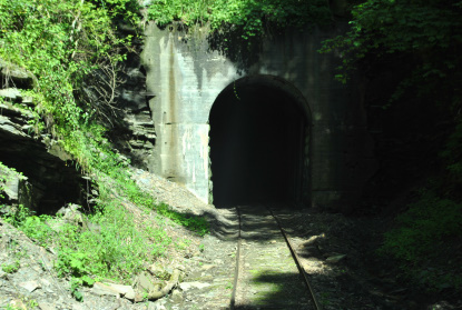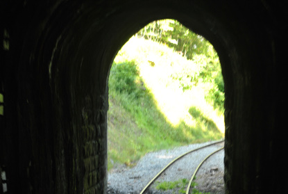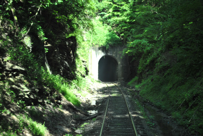 We ran through the only tunnel on this railroad, a 1,735 foot affair which meant we were almost to Elkins. We crossed all the major highways and streets before we backed around the northwest leg of the wye into Elkins station.