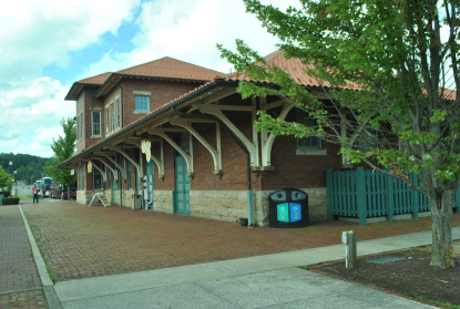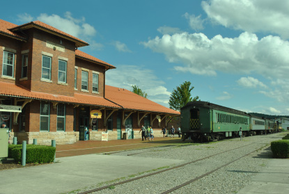 The Elkins station before I started my bus host duties, distributing water to my passengers when they returned to the bus. We departed at 5:30 PM and I relaxed on the way back. From Keyser back to Cumberland we ran through a heavy thunderstorm and this made me think just how great our bus driver was doing his job. We returned to the Ramada Inn and I worked on stories the rest of the evening with Elizabeth before we called it a night.