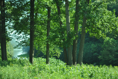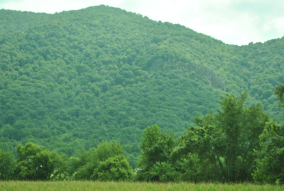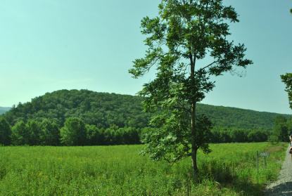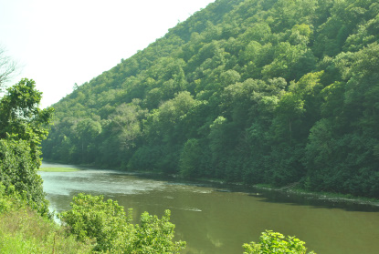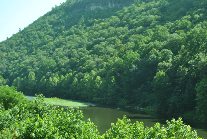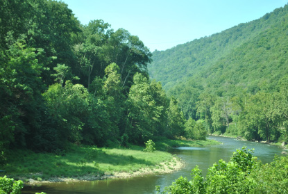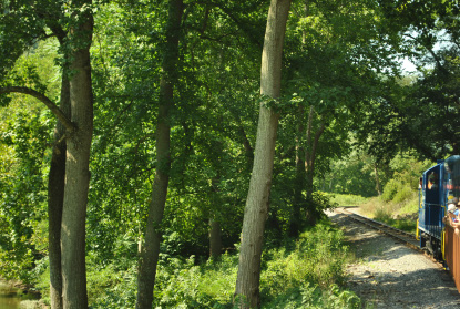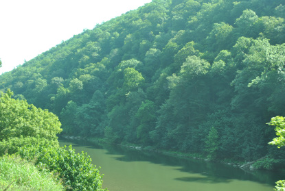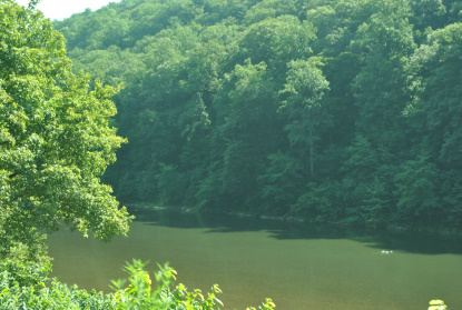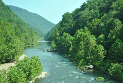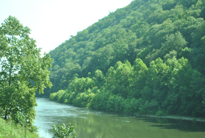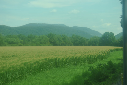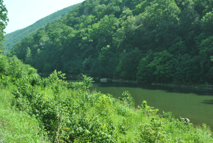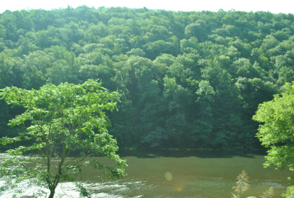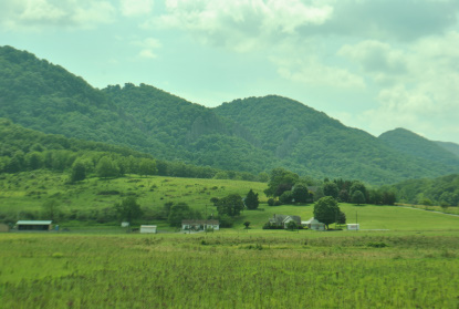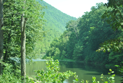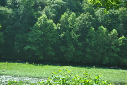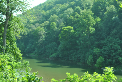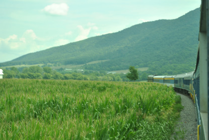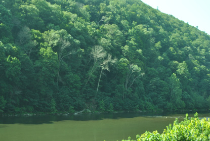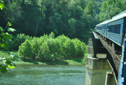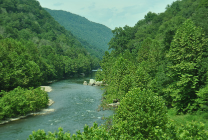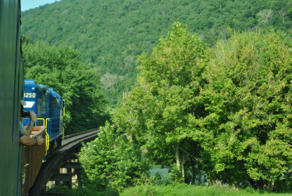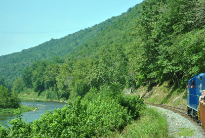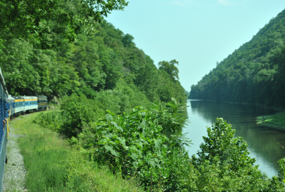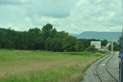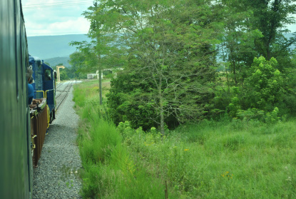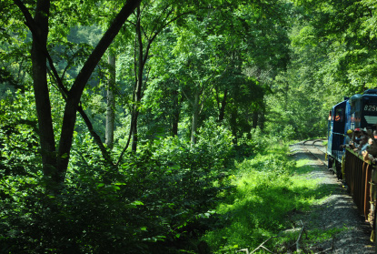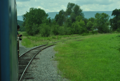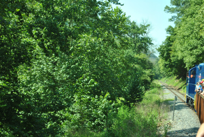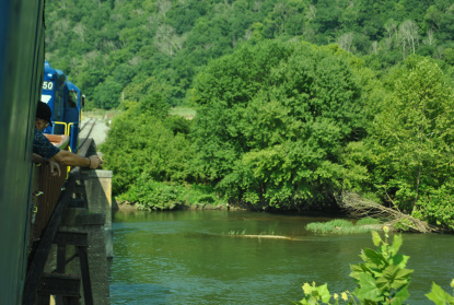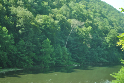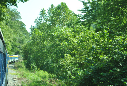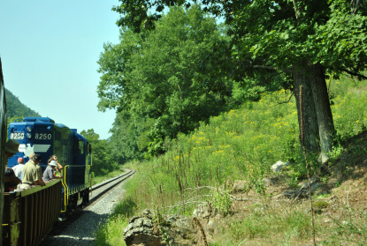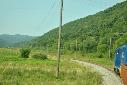 Another of those pleasant West Virginia scenes. They stopped the train then annouced that the open air gondola car was now open and passengers flocked to this unique car, in which they would have to ride all the way through "The Trough".