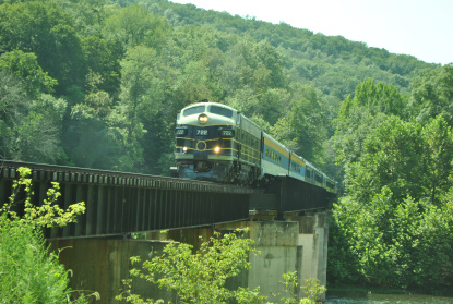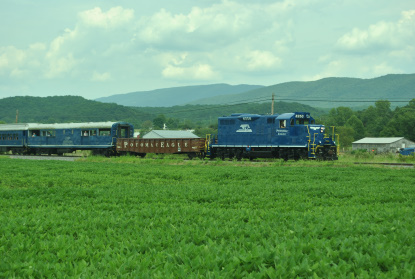Potomac Eagle Scenic Railroad HistoryMost visitors on the Potomac Eagle are unaware of the long but storied past of the South Branch Valley Railroad. The line has been a vital part of the valley from Green Spring to Petersburg for well over 100 years. The South Branch Valley Railroad comprises a 52.4-mile route from Petersburg to Green Spring where it links to the CSXT mainline connecting Cumberland, MD to Martinsburg, WV. The SBVR generally parallels the South Branch of the Potomac River – from which the railroad takes its name. Crossing Hampshire, Hardy and Grant counties, the SBVR serves the towns of Romney, Moorefield and Petersburg. The railroad is headquartered in Moorefield. It is owned and operated by the West Virginia State Rail Authority. State employees perform maintenance and freight operations.