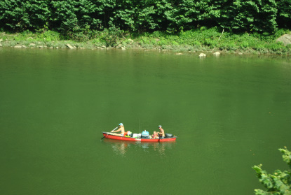 The rafters out on the South Branch of the Potomac River. We returned to Romney at 4:40 PM and everyone had an opportunity to visit the gift shop before the buses departed at 5:30 PM and returned to the Ramada Inn. I had dinner of Buffalo Wings then worked on stories and Elizabeth took over while I packed my case since we are leaving for home tomorrow night.