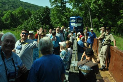 I went to Harrigan's Restaurant to have breakfast and ate it with my friend and fellow NRHS member Joe and went back upstairs to the room, got Robin up and worked on stories. Elizabeth was supposed to come by but never made it as she got stuck in the elevator between floors with nine other people so the Cumberland Fire Department had to rescue them and everyone had to use the stairs to reach the buses this morning. Every trip is an adventure! So once the fire department left the hotel, the buses then arrived and once loaded, we made the short forty-minute bus ride to the Potomac Eagle for the second trip of this convention.