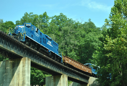 Freight service operates five days a week, Monday through Friday, with special and unit train operations on weekends as needed. The SBVR’s largest customer is Pilgrim’s Pride in Moorefield. Pilgrim’s feed mill receives corn and other commodities used in the manufacture of its poultry feed. Nearly all of the corn arrives in 65-car unit trains which must be moved to the feed mill, unloaded and returned to CSXT in less than 48 hours. Three customers are located in Petersburg: Adell Polymers ships and receives loads of plastic pellets, Allegheny Wood Products ships finished lumber and Greer Lime ships outbound loads of lime. In 2004, the SBVR handled 4,243 revenue loads.