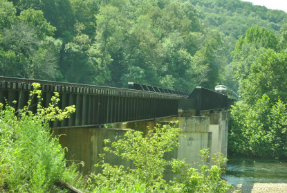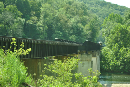 In the mid-1970's, the line was abandoned by the B&O. It was taken over by the State of West Virginia on October 11, 1978, as government officials became concerned over the harm that would come to existing industry and the prospects of driving away new business along the line. Track rehabilitation began on the 52-mile stretch, but the famous flood of 1985 knocked out four bridges and left 13 miles of track with heavy damage and 23 miles with moderate damage. It was reported that in some stretches in the Trough that rail and ties hung in mid-air with all traces of road bed gone beneath them.