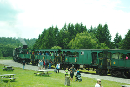 One last view of the Cass station for today. We made it back down to Cass and I would like to thank Cass Scenic Railroad and Mountain Rail for having us here today. The trip was really interesting and Bob, Elizabeth and Robin all loved it as much as I did. The good news is that we go from Cass to Old Spruce tomorrow and ride up the mountain again. We drove back via Elkins so the others were able to see part of the route along the Shavers Fork of the Cheat River. We stopped at a Subway in Elkins and picked up dinner to go, returning to Cumberland at 8:50 PM, where we picked up our NRHS convention badges and goodie bags, then worked on stories.