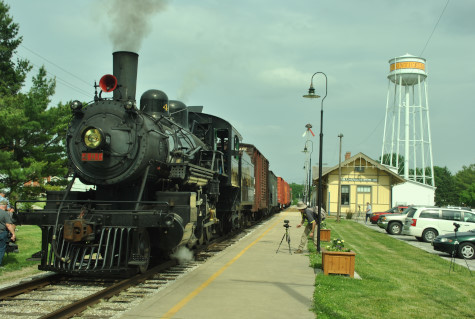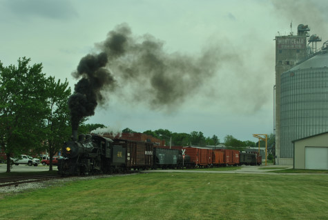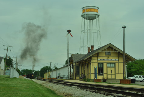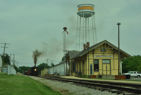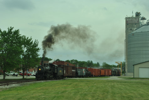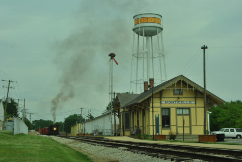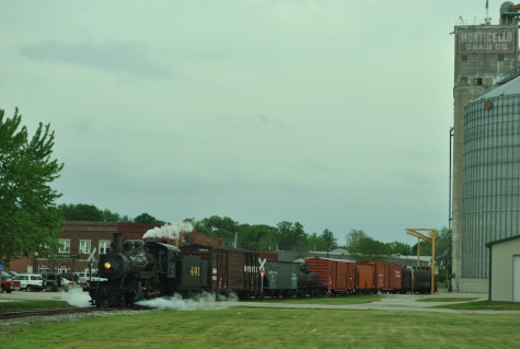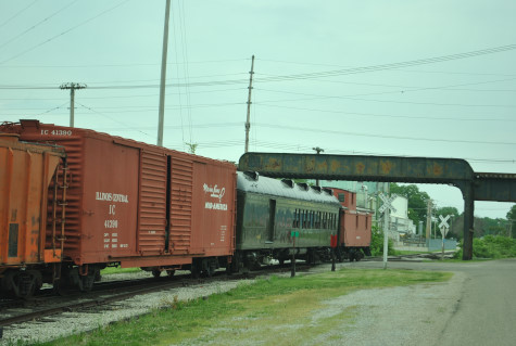 The Monticello Wabash station. Everyone reboarded and were taken to the west yard just past the Norfolk Southern main line bridge, where we were required to detrain as train had to reverse to the grain elevator on exempt tracks. We all walked to the pre-determined location.