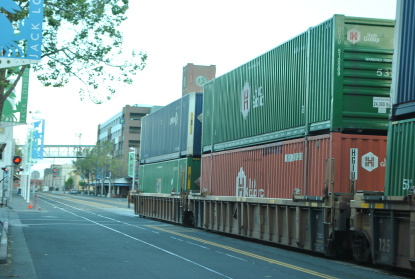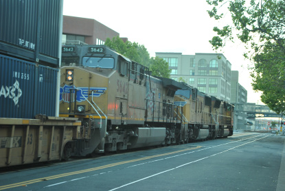 A Union Pacific stack train came throungh the street in Oakland. Bob Jacoby, Chris and I walked over to the Buttercup Grill where I had French Toast and bacon which was excellent.