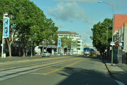 Coast Starlight 11 arrived at Oakland's Jack London station and we waited in a line to have our tickets scanned before we boarded Business Class. The train left Oakland on time at 8:50 AM and we were off and running. The tracks were bumpy down to Newark this morning, where we arrived at 9:20 AM and started our detour all the way to Burbank Junction. We ran by the Southern Pacific Fremont station before arriving in Niles at 9:37 AM.