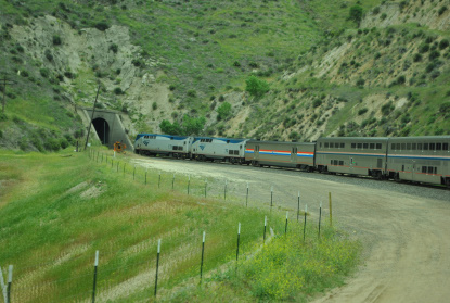 The train curving onto the old Western Pacific, the route of the fabled California Zephyr. The train headed through Niles Canyon and through Tunnel 1 and 2.