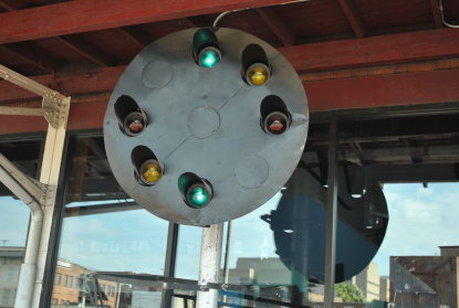 Norfolk and Western tricolor signal display in front of the museum.
