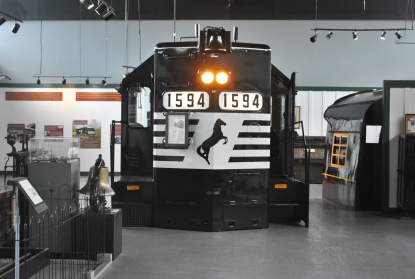 Norfolk Southern SD40 1594 locomotive cab display on our way outside.