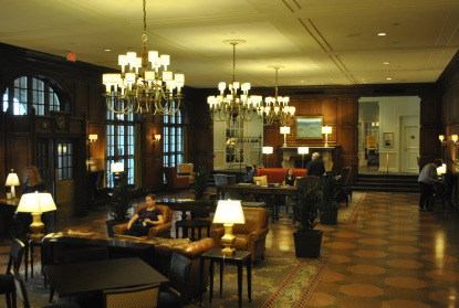 The lobby area of the Hotel Roanoke. I walked out onto the glass bridge over the Norfolk Southern mainline.