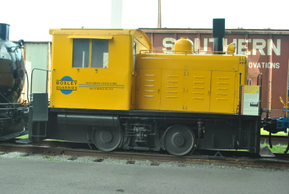 Boxley Quarries 30 ton Whitcomb switcher DM-31 built by the Whitcomb Locomotive Works in Rochelle, Illinois in 1941 for Houston Shipbuilding. At some point, it was purchased by Blue Ridge Stone and worked as a switcher at the company's complex in Roanoke, Virginia.