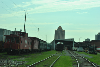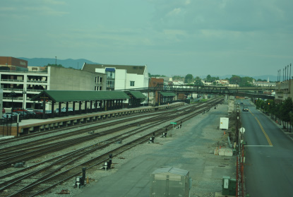 Looking west are the mainlines, the Amtrak Roanoke station and downtown Roanoke.