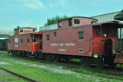 Norfolk and Western caboose 518539 built by International Car in 1969 and 518409 built by Norfolk and Western in 1940.