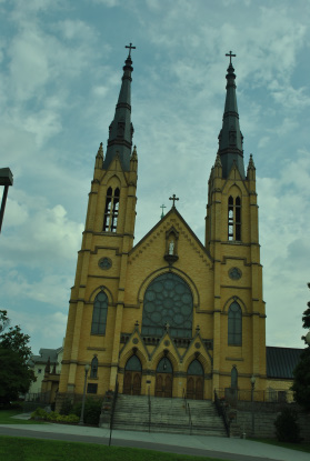 The Norfolk and Western station in Roanoke that houses the O. Winston Link Museum and the Roanoke Visitor Center. I returned to the room and we packed up and went to the lobby to call Enterprise to pick us up which they did in the car we rented, a Ford Fiesta. We went to the MacDonald's where I had hotcakes and sausage. Next I drove us over to an impressive church.