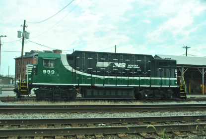 Norfolk Southern B4 999 by the Roanoke Shops. From here we arrived at the Virginia Museum of Transportation early, but the old railroad walk was displaced by the new Amtrak Roanoke station so they moved it here.