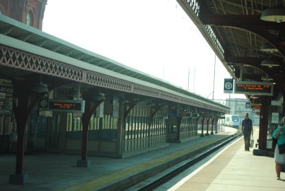 The four travellers, namely Robin, Bob, Elizabeth and myself, checked out of the Rodeway Inn in Newark and stopped at McDonald's for breakfast. As it was Monday morning, we stayed off Interstate 95 and took surface streets into Wilmington. We pulled up in front of the Amtrak station, took our luggage out of the car and while Bob, Elizabeth and Robin waited, I went into Enterprise and returned the car keys. The receipt was e-mailed to me and the second rental car of the trip was done. We went into the station, found four seats together and waited for our Acela Express Train 2107. Elizabeth went and picked up her and Bob's Acela tickets while Robin and I sat waiting. I visited the store in the station and bought some Coca-Cola for the trip down to DC and to Cumberland later today. About 8:10 AM, we decided to walk up onto the platform and take some pictures of the train action.