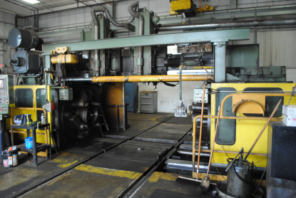 More than 3,100 piles were driven into the ground at the southern end of the property for the 30 stall roundhouse , which was intended to eventually contain 44 stalls. The $125,000 building had a turntable that measured 75 feet across. The locomotive building encompassed nearly 92,000 square feet and was divided into erecting, machine and boiler/tank shops. The central erecting shop measured 80 feet across and had three pit tracks. Two 65-ton Shaw cranes, each with a span of 78 feet, towered over the erecting bay. In the machine shop, one encountered tools including lathes, shapers and milling machines.
