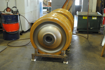 Next we went into the Wheel Shop where we saw the Wheel Lathe.