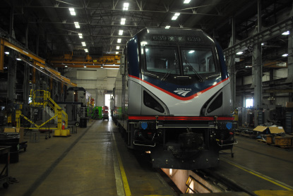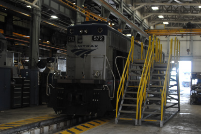 Also in for work are Amtrak GP38-3 724 built by EMD in 1976 and Amtrak MP15D 570 built in 2004 by Motive Power Industries.