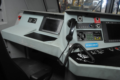 The cab controls of Amtrak ACS-64 639. These units have a central aisle which makes maintaining them much easier than any other kind of engine.