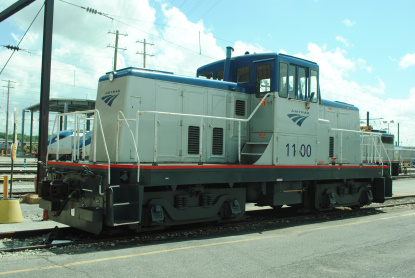 Amtrak 80-ton shop switcher 1100 built by General Electric in 1952.