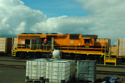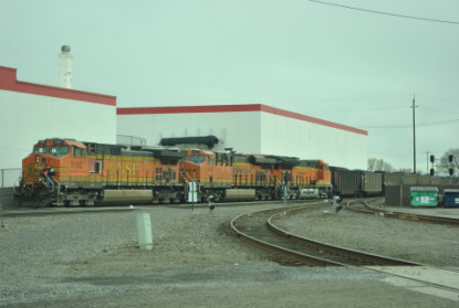 A trackmobile was switching grain cars. From here we went to 7-11 to get some needed supplies.