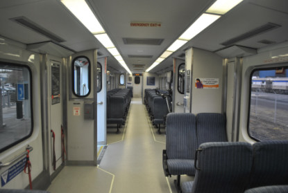 The inside view of the Westside Express Train. We talked with our conductor for most of the trip back to Beaverton.