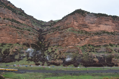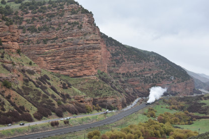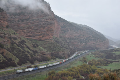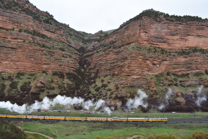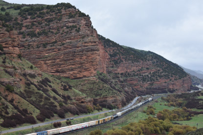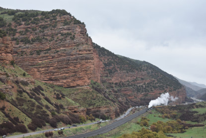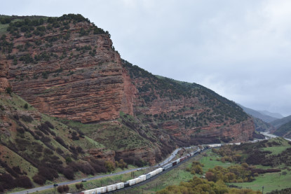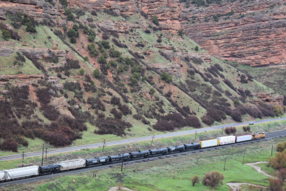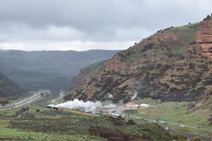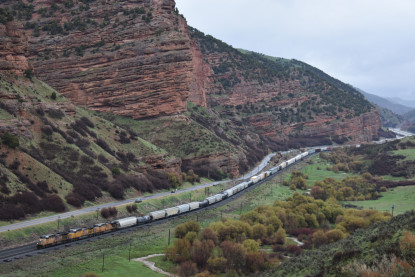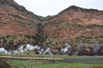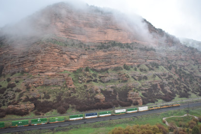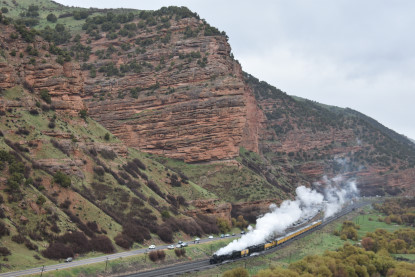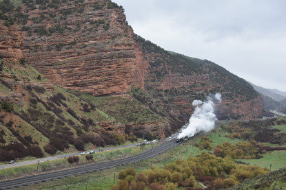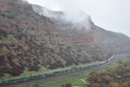 Big Boy 4014 and Union Pacific 844 made an impressive show coming down Echo Canyon. I was amazed to see it and very happy I got up this morning to witness it in person. After we climbed off the hill on a different path and cleared the muck off our shoes, we visited the rest area's information area which had a lot of excellent displays. Elizabeth and I came back together and stopped at MacDonald's before returning to Salt Lake City, filled the car and returned to the Radisson Hotel. I wrote this story and next was a trip on the FrontRunner train and also to finish up the light rail miles later this afternoon out to the airport.