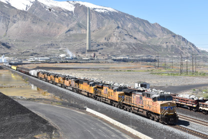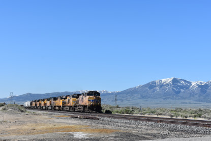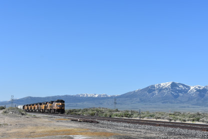 Oquirrh Mountains. After that, we drove to the next grade crossing and just missed a northbound train near Vernon but finally caught up to him at the next grade crossing near Clover Valley.