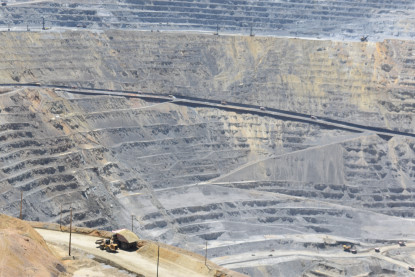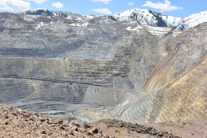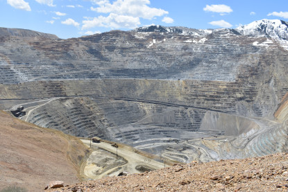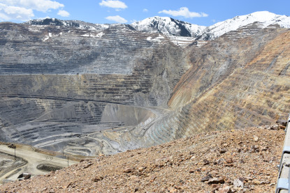 The Bingham Canyon Mine, more commonly known as Kennecott Copper Mine among locals, is an open-pit mining operation extracting a large porphyry copper deposit southwest of Salt Lake City. The mine is the largest man-made excavation in the world and is considered to have produced more copper than any other mine in history - more than 19 million tons. The mine is owned by Rio Tinto Group, a British-Australian multinational corporation. The copper operations at Bingham Canyon Mine are managed through Kennecott Utah Copper Corporation which operates the mine, a concentrator plant, a smelter, and a refinery. The mine has been in production since 1906, and has resulted in the creation of a pit over 0.6 miles deep, 2.5 miles wide, and covering 1,900 acres (3.0 sq mi). It was designated a National Historic Landmark in 1966 under the name Bingham Canyon Open Pit Copper Mine. The mine experienced a massive landslide in April 2013 and a smaller slide in September 2013.