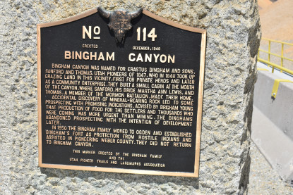 Bingham Canyon Copper MineBingham Canyon was a city formerly located in southwestern Salt Lake County, Utah in a narrow canyon on the eastern face of the Oquirrh Mountains. The Bingham Canyon area boomed during the first years of the twentieth century, as rich copper deposits in the canyon began to be developed, and at its peak the city had approximately 15,000 residents. The success of the local mines eventually proved to be the town's undoing, however: by the mid-twentieth century the huge open-pit Bingham Canyon Mine began encroaching on the community, and by the late twentieth century the Bingham townsite had been devoured by the mine. No trace of the former town remains today.