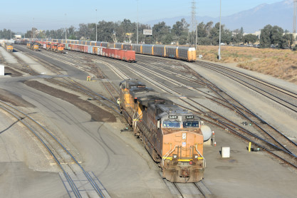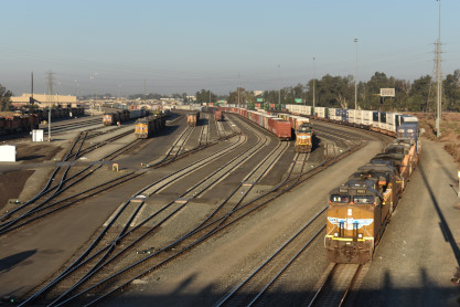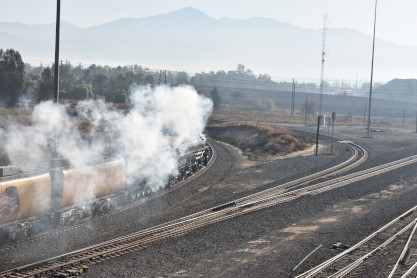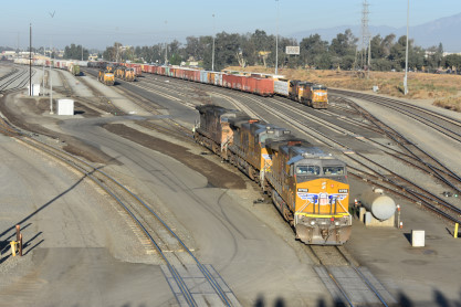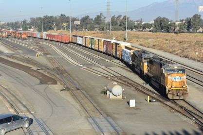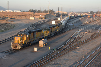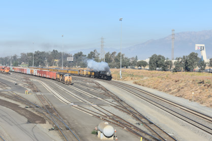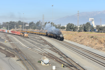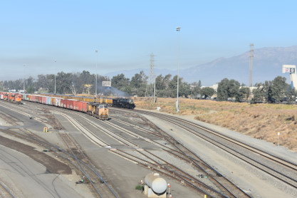 Bill Compton and I wanted to go to West Colton, as did Robin Bowers and Chris Parker, so we all met at my house at 5:55 AM and being a Tuesday, I had to let Chris and Robin park in my driveway since it was street sweeping day in Santa Ana. Bill arrived a little after 6:00 AM and soon we were driving up California 57 to California 60, then Interstate 15 to Interstate 10, exiting at Pepper Street where we turned the car around and parked. We walked out to the bridge to wait for Union Pacific Big Boy 4014 to leave West Colton Yard.
