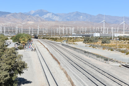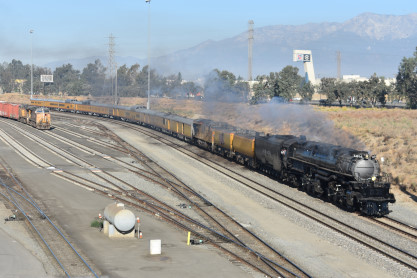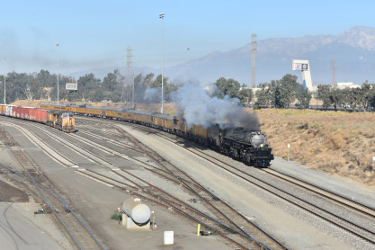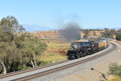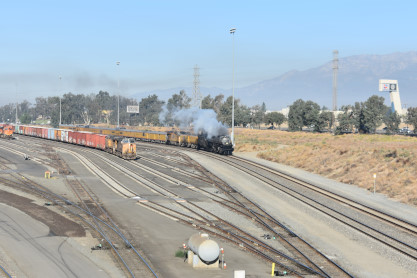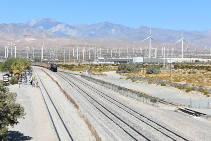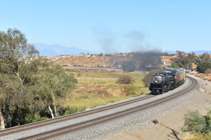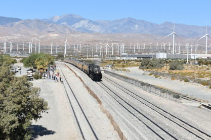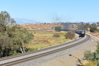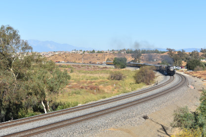 Union Pacific 4014 East at North Indian Canyon Road bridge. We took this road south to East Racquet Club Road to California 111 to Interstate 10, then California 60 to Interstate 215 to California 91, to California 55 to California 22, arriving at my house after 12:30 PM, ending my coverage of Union Pacific Big Boy 4014. It had been another excellent chase of this steam engine.