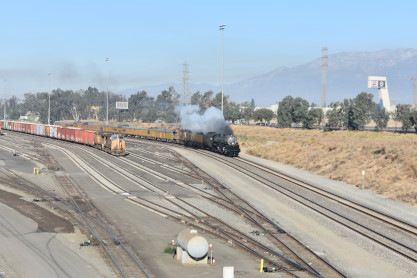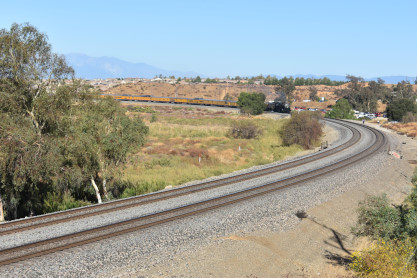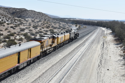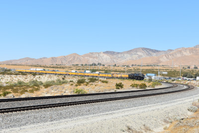 Union Pacific 4014 East at Desert Lawn Drive. It then took us almost 15 minutes to get back onto Interstate 10 due to traffic and as a result, were behind the train but despite the traffic, did get ahead of him and reached our next photo location.