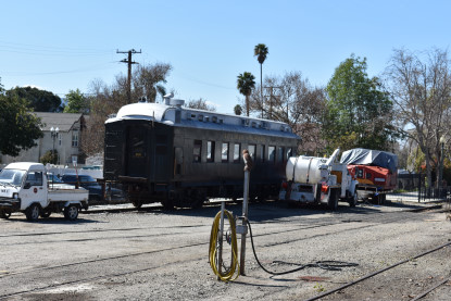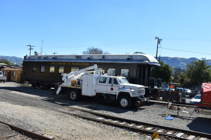 John Goodman and Skip Waters of the National Railway Historical Society convention commitee invited me to go on a NRHS Discovery Visit for the 2020 Convention on the Fillmore & Western Railroad, and I accepted their generous offer. So on a Saturday morning I arose and fixed breakfast before I drove to the Fullerton Hotel to meet them. We discussed the plans for the 2020 NRHS convention in Fullerton then talked about Maine for a future convention. We then drove the Riverside Freeway to Interstate 5 to CA Highway 124 and arrived in Fillmore with an hour to spare. Skip and John would be making their first visit to the Fillmore and Westeern Railroad.