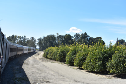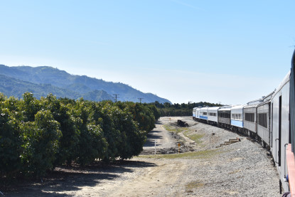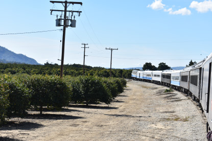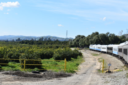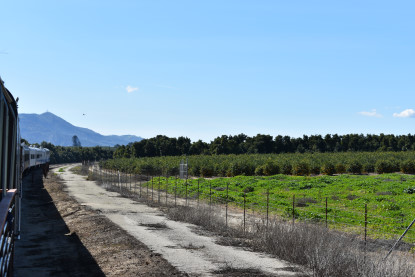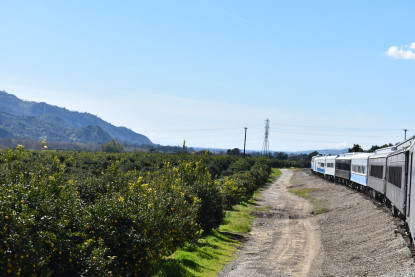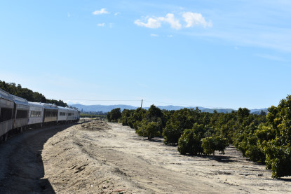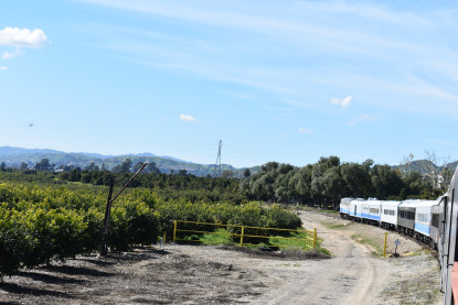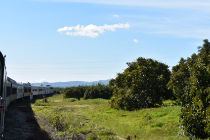 HistoryThe track is a standard gauge railroad constructed in 1887 by Southern Pacific Railroad through the Santa Clara River Valley in Ventura County, California. This line was originally part of the Southern Pacific's main line between San Francisco and Los Angeles before a shorter route was built through the Santa Susana Mountains in 1904. State Route 126 follows roughly the same route from Ventura to Santa Clarita. The track was used extensively by Southern Pacific as late as the 1950s to haul citrus from packing houses at the communities along the Santa Clara River. In 1989, the branch line that connects at its west end to the Union Pacific at Montalvo in Ventura was purchased from Southern Pacific by the Ventura County Transportation Commission. The eastern end of the line now terminates in Piru as storm damage in 1979 severed the eastern end of the line to Saugus in Los Angeles County.