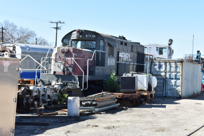 Fillmore and Western RS-32 4009, originally Southern Pacific 4009. We then went to the ticket office where we went to see the lady who was coordinating with the NHRS on our convention trip. We picked up our tickets for today's ride then explored the Fillmore Southern Pacific station which is now a museum. At train boarding we walked through five cars to get to the open air car, the place I always love to be, and took our seats.